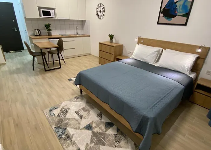 В апартаментах для самостійного приготування їжі є обладнана кухня з холодильником. Залізничний вокзал Центральний Залізничний вокзал Київ-Пасажирський знаходиться за 1.4 км від апартаментів.